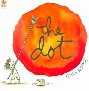The Dot, written and illustrated by Peter H. Reynolds and published by Walker Books in 2003, tells of an art teacher who encouraged a young artist, who didn’t believe she could, to make her mark on a piece of paper. Although the story features an art teacher, Reynolds dedicated the book to his 7th grade math teacher who, he said, ‘dared me to “make my mark”.’