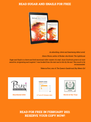 Anne Goodwin is the author of two novels and a short story collection. Her debut novel, Sugar and Snails, about a woman who has kept her past identity a secret for thirty years, was shortlisted for the 2016 Polari First Book Prize. Throughout February, subscribers to her newsletter can read Sugar and Snails for free: https://www.subscribepage.com/sugar-and-snails-free-e-book