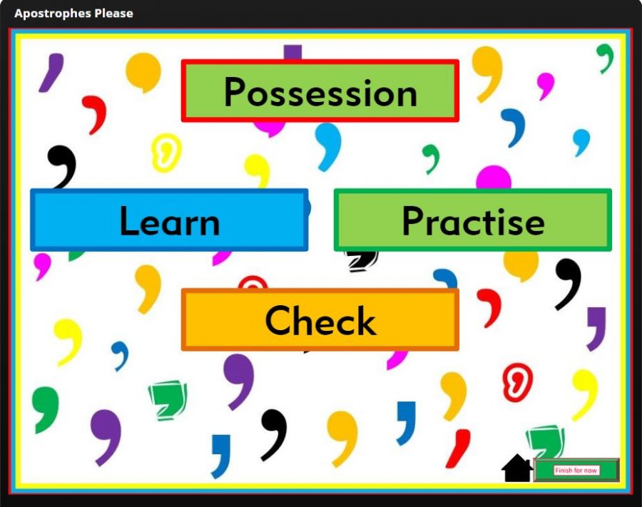 To support your teaching of this punctuation mark and to encourage writers to get their writing right, I have produced an interactive resource that explains, demonstrates and provides practice in its correct use. It is called Apostrophes Please!