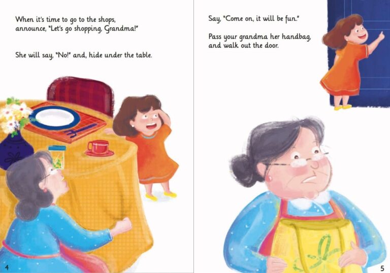 Taking Grandma shopping can be tricky! She will dawdle to the bus, ask to push the trolley and plead for chocolate. But with cuddles, a few deep breaths and a piggy back ride, you and your grandma will get the shopping done!
