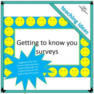 Getting to know you surveys are a great way for teachers and children to get to know each other at the beginning of the year, and support the establishment of a welcoming, supportive environment in which individuals are respected and appreciated. Topics to survey are limited only by your imagination. With the incidental development of literacy and mathematical skills, they make an all-round great introduction to school.