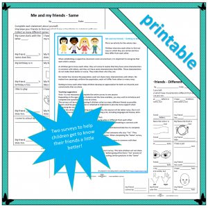 Me and my friends Children interview their friends to find out ways in which they are similar and how they differ from each other